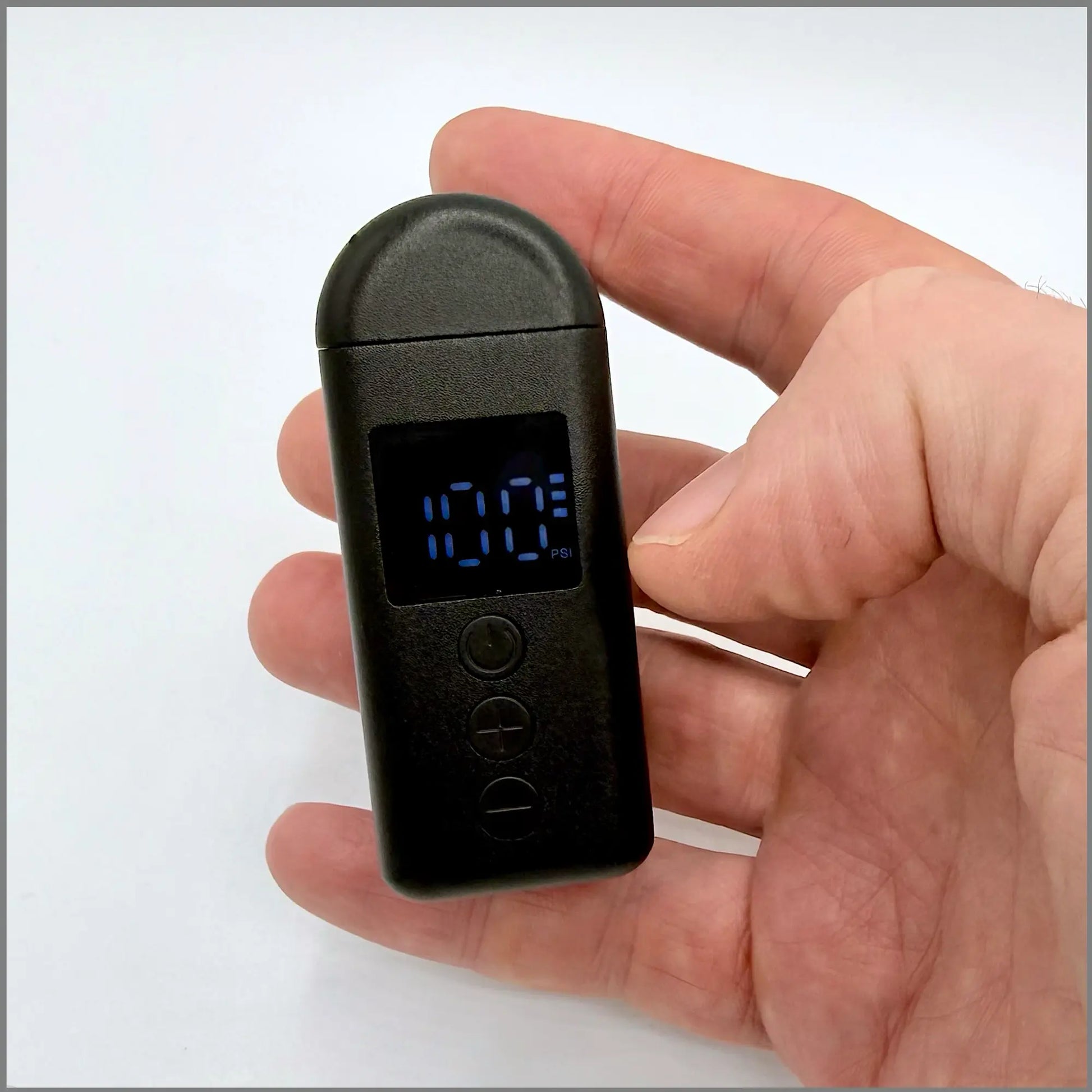 Mit einem leistungsstarken 400 mAh Akku kann die Mini-Pumpe zwei 700C-Reifen auf bis zu 80 PSI mit nur einer Ladung aufpumpen. Über USB-C ist sie in nur 30 Minuten vollständig geladen und erreicht einen maximalen Druck von 100 PSI / 6,9 BAR.