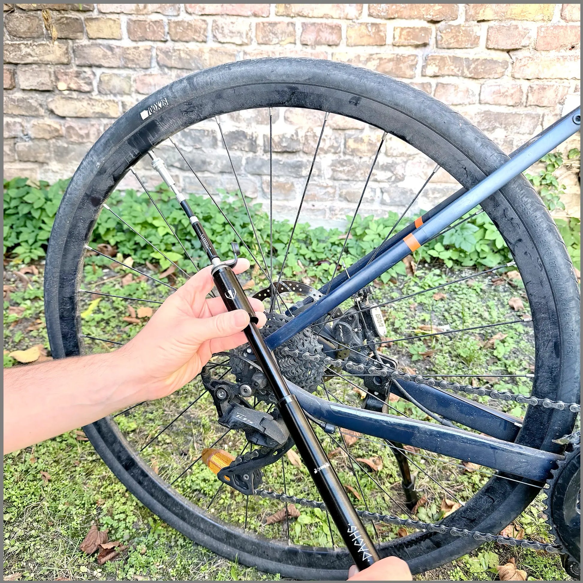 【KOMPAKT & MOBIL】 Nur 21 cm lang (35 cm ausgezogen) – passt perfekt in Trikottasche, Satteltasche oder Framebag. Inklusive Halterung zur sicheren Befestigung unter dem Flaschenhalter.