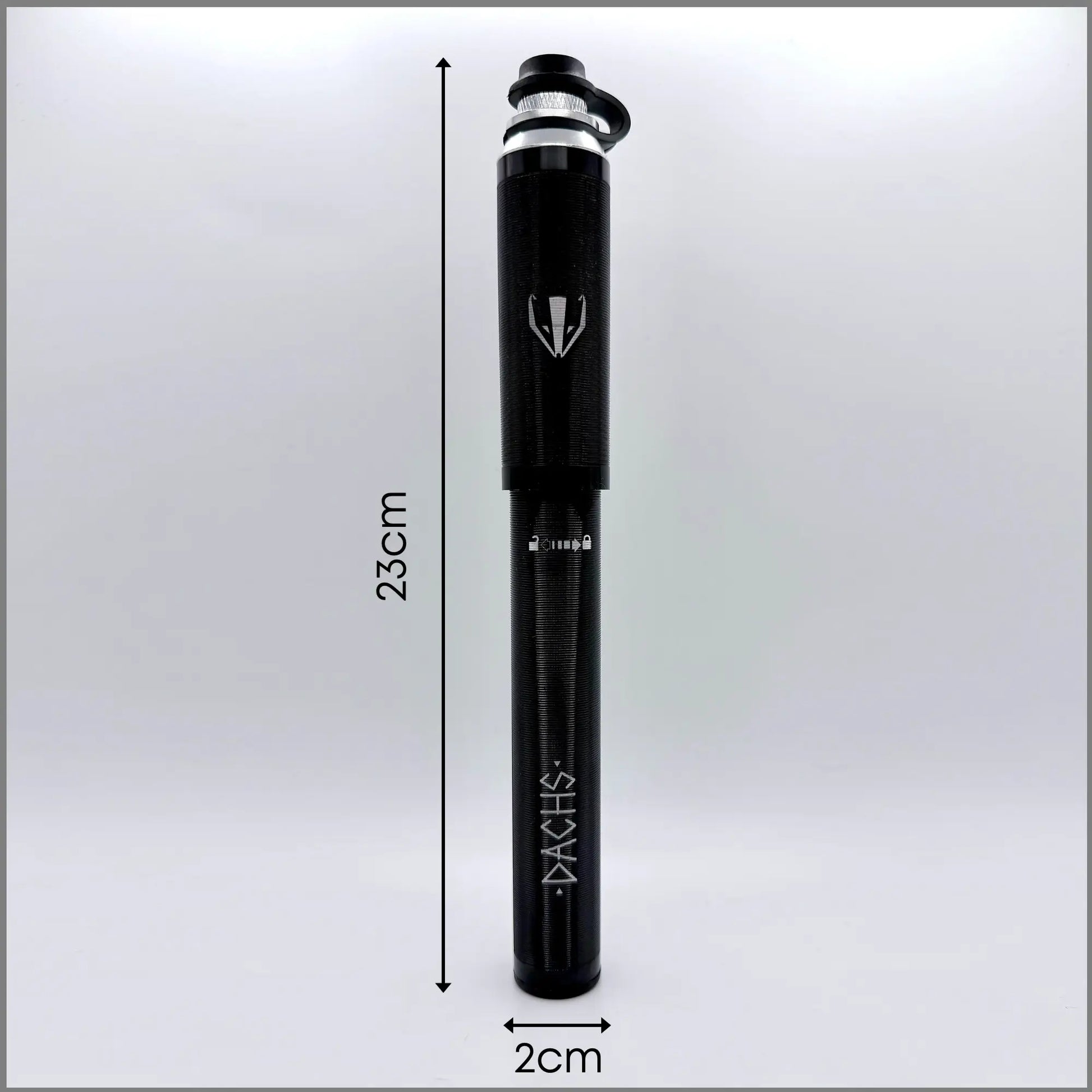 Mit einem Rohrdurchmesser von 2,1 cm und einer Länge von 21 cm (35 cm ausgezogen) bietet die DACHS Hand-Pump einen gleichmäßigen Pumpvorgang mit 14 cm Hubweg.