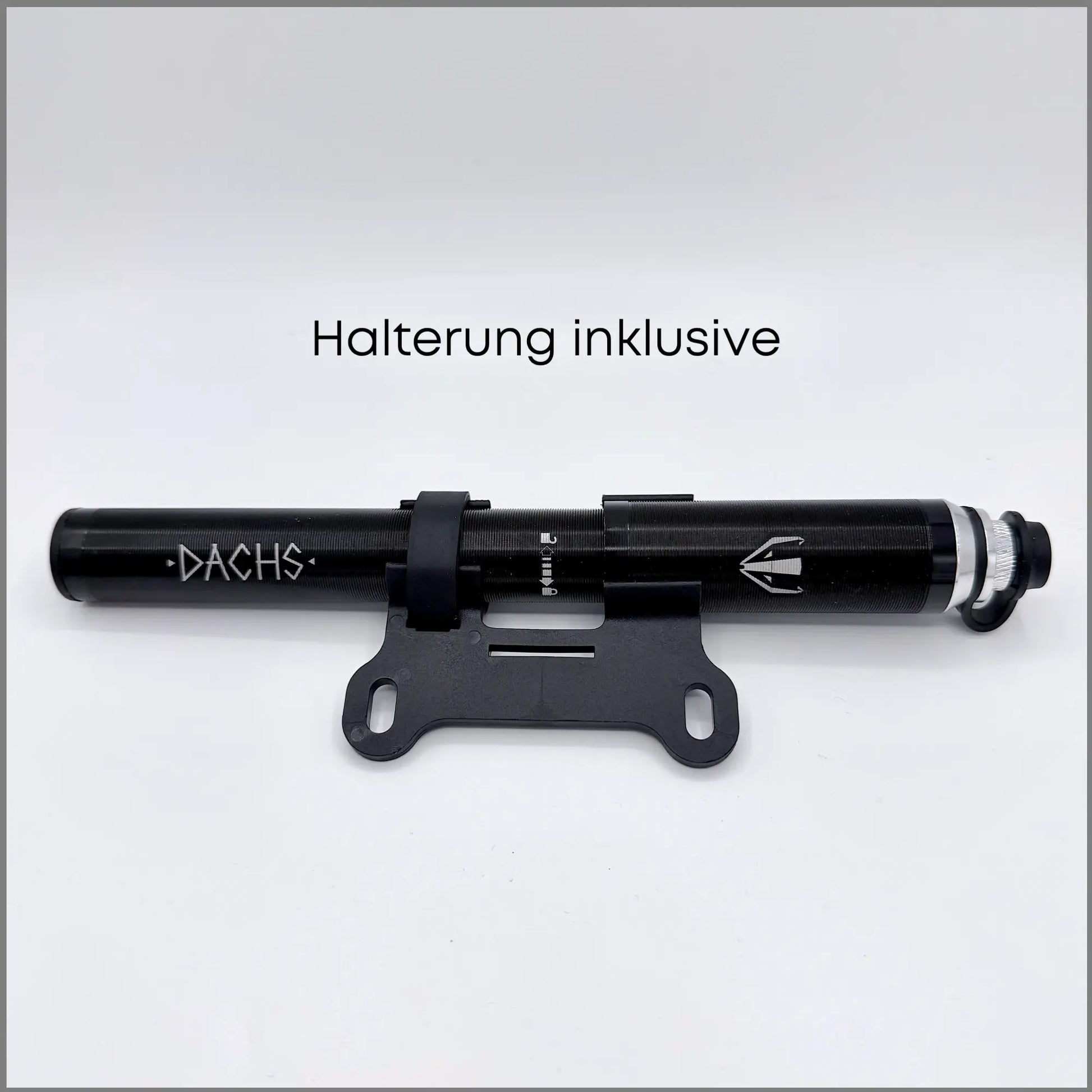 Eine Halterung ist im Lieferumfang enthalten, mit der sich die Pumpe sicher unter dem Flaschenhalter befestigen lässt – immer griffbereit auf Straße oder Trail.